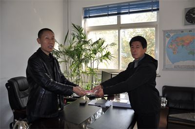 当六分公司党总支书记、工会主席徐金祥将500元丧葬慰问金送到尚彦田手上时,尚彦田激动地握着徐金祥的手,连声说:“感谢!感谢!”