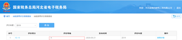 近日,国家税务总局公布了2020年全国纳税信用评价结果,公司获评2019年度“纳税信用A级”企业,这是公司自2017年参评以来第三次获此殊荣。